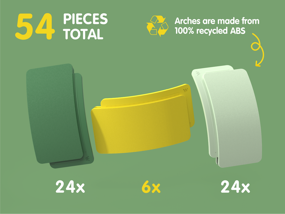Waytoplay Arches Builder Set je najveći Arches set koji djeci daje potpunu slobodu gradnje i omogućuje stvaranje velikih, kompleksnih konstrukcija poput mostova, tunela, rampi, tornjeva i cijelih svjetova igre. S čak 54 elementa, ovaj set je idealan za djecu koja vole graditi, istraživati i stvarati vlastite ideje bez ograničenja.